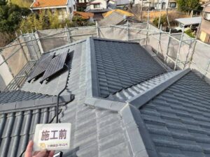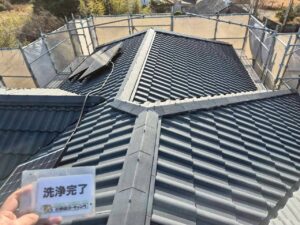 ソーラーパネルが設置された繊細な屋根部分も、瓦の隙間まで丁寧に洗浄し、お住まい全体が塗装に最適な「真っ新な状態」へと生まれ変わっています。