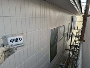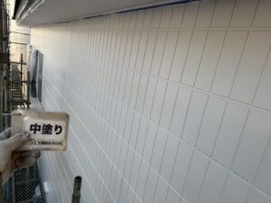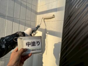 外壁塗装の要となる「中塗り」工程では、塗膜に十分な厚みを持たせ、本来の鮮やかな色彩と耐久性を引き出していきます。