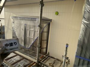S様邸では付帯部下塗り・外壁中塗り塗装作業を行いました。