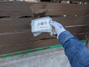 続く「上塗り」工程では、仕上げ用の塗料を重ねることで、付帯部を紫外線や雨風から守るための強固な保護層を形成し、耐久性を最大限に引き出します。