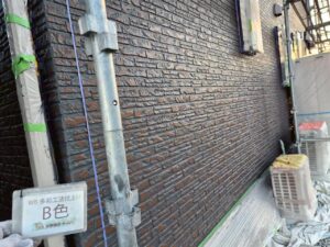 専用ローラーを用いてB色を乗せることで、サイディングに天然石のような深い立体感と重厚な表情が生まれます。