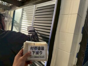 同時に、雨戸などの「付帯部」にも専用の下塗り材を丁寧に施し、後に重ねる塗料の密着性を高めるための土台を徹底して作り上げます。