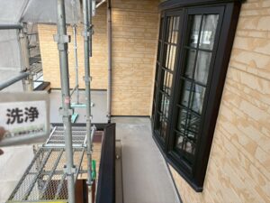 特に汚れが目立っていたベランダ周りや外壁の筋状の汚れも、写真の通り下地が見えるほどスッキリと綺麗になり、本来の明るさを取り戻しました。