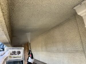 軒天やパラペット部分といった細部まで徹底的に洗浄することで、古い塗膜の浮きや汚れを解消し、新しい塗料がしっかりと密着するための最適な下地を整えました。
