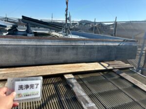塗装の仕上がりを左右する重要な工程であるため、洗浄前には汚れが目立っていた箇所も、水圧を細かく調整しながら根こそぎ洗い流しております。
