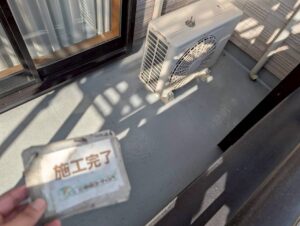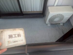 エアコンの配管や手すりといった複雑な箇所も、後の作業に支障が出ないよう細心の注意を払いながら養生を徹底しました。