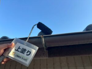 まず屋根には仕上げとなる「上塗り」を施し、過酷な直射日光や雨風から住まいを守る強固な塗膜を形成させ、新築のような輝きを蘇らせました。