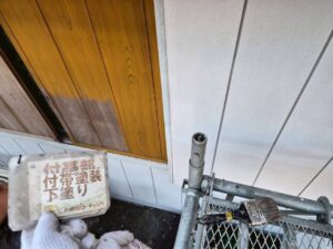S様邸では木部付帯部下塗り、上塗り塗装作業を行いました。