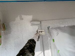 外壁塗装では「中塗り」で塗膜に厚みを持たせた後、さらに「上塗り」を重ねることで、色ムラのない均一で美しい質感と高い防水性能を確保しています。