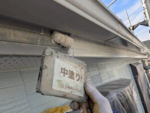 付帯部中塗り塗装作業を行います。
