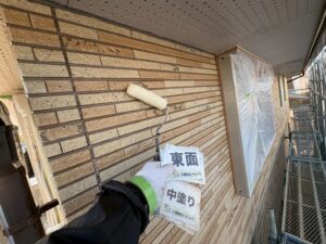 この工程は、下地と上塗り塗料をしっかりと密着させ、色あせや劣化から外壁を保護するための非常に重要なステップです。