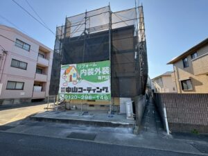 Y様邸では外壁中塗り・上塗り塗装作業を行いました。