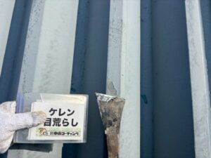 まずは「ケレン・目荒らし」を行い、古い塗膜の浮きや錆を丁寧に落としながら、表面に微細な傷をつけることで塗料の密着性を格段に高めます。