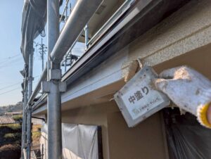 中塗りで一度全体を色付けした後に、仕上げの上塗りを施すことで、ムラのない深みのある美しい質感と、紫外線や雨風から住まいを守る強固な塗膜が完成します。