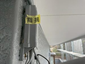 黄色い「指摘」テープは、わずかな塗りムラや微細な隙間も見逃さず、完璧な仕上がりを目指してチェックした証です。