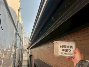 K様邸では付帯部下塗り・中塗り塗装作業を行いました。