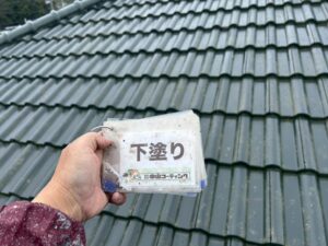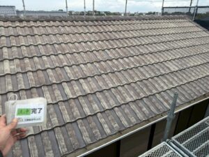 F様邸では屋根下塗り、軒天下塗り・上塗り作業を行いました。