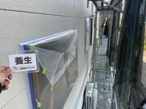 養生作業は「ただ覆うだけ」と思われがちですが、実は塗装の品質に直結する非常に重要な工程です。・塗料のはみ出し防止・塗り分けラインの美しさ・近隣への飛散防止・清掃時間の短縮 これらすべてに関わってくるため、丁寧な養生ができているかどうかで、最終的な満足度が大きく変わります。お客様の大切な住まいを美しく仕上げるため、細部まで丁寧な養生を徹底し、安心していただける施工を心がけております✨