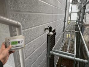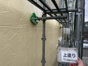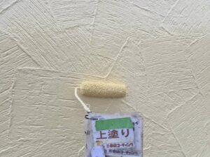 中塗りがしっかり乾燥した後、仕上げとなる上塗り作業に入ります。上塗りは、見た目の美しさを決定づける最終工程であり、同時に紫外線や雨風から建物を守る大切な役割も担っています。ここで重要なのは、規定の塗布量を守り、均一に仕上げること。これにより、塗料本来の性能を最大限に発揮させることができます(^^)/仕上がった外壁は、艶やかでムラのない美しい状態に✨まさに塗装工事の醍醐味とも言える瞬間です!