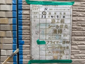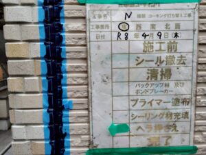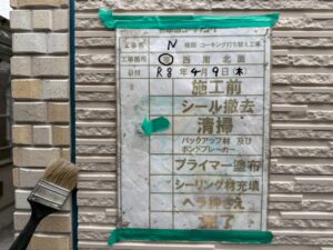 建物の隙間を埋めるコーキング工事において、青いテープを貼る「養生」は、防水の成功を左右する一番大切な下準備です✨