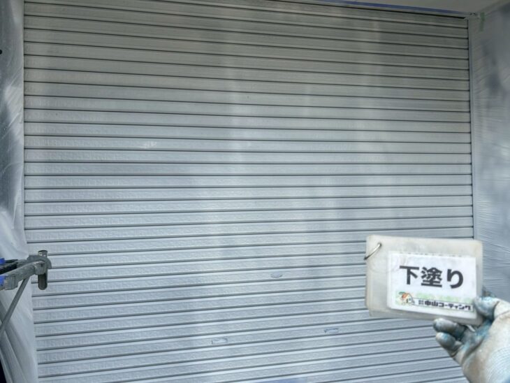 店舗のシャッターや看板を吹付塗装で仕上げました。