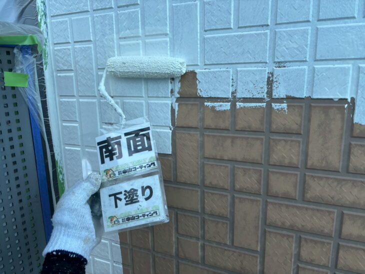 外壁を下塗り・中塗り・上塗りの3工程で仕上げました。