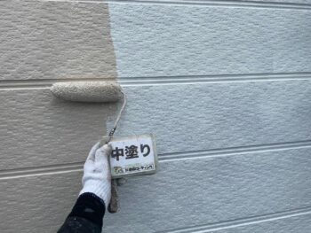 外壁中塗り塗装を行います。