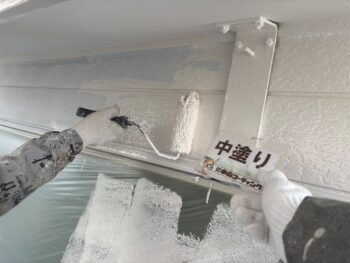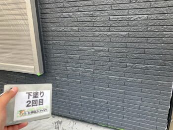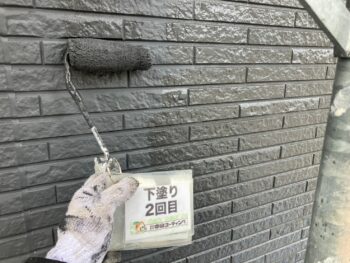 WB多彩工法仕上げ ベース色下塗り2回目塗装を行います。