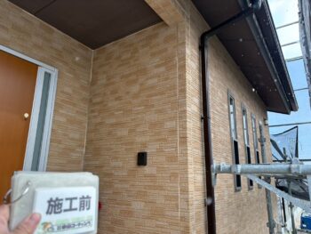 例えば今の壁面が何色も色を重ねたような外壁材の場合、単色で塗装を行うとどうしてものっぺりとした印象になってしまいます。