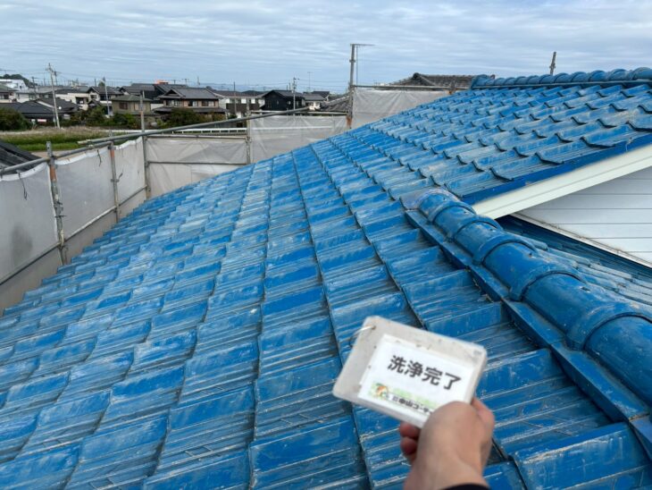 外壁や屋根に付着した汚れ・カビ・コケを丁寧に洗い流し、塗装前の下地を整えます。