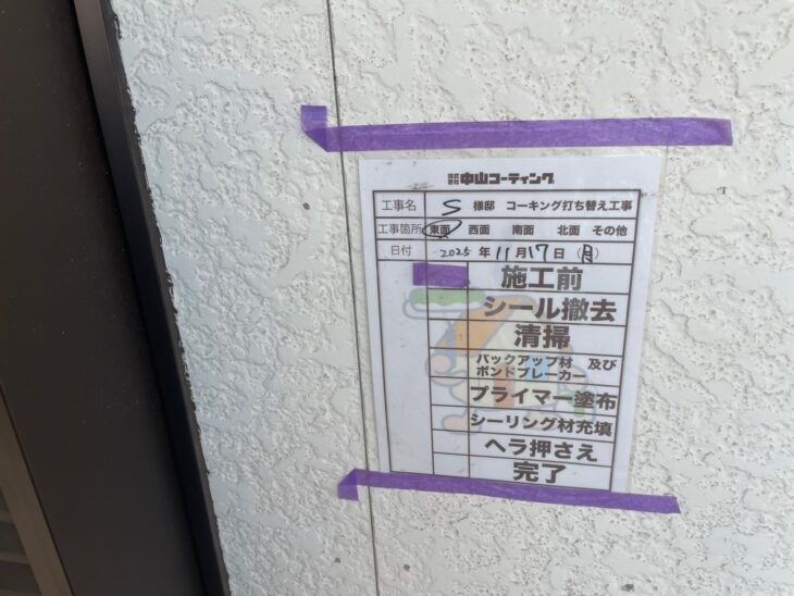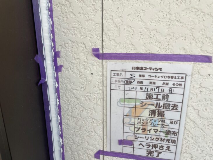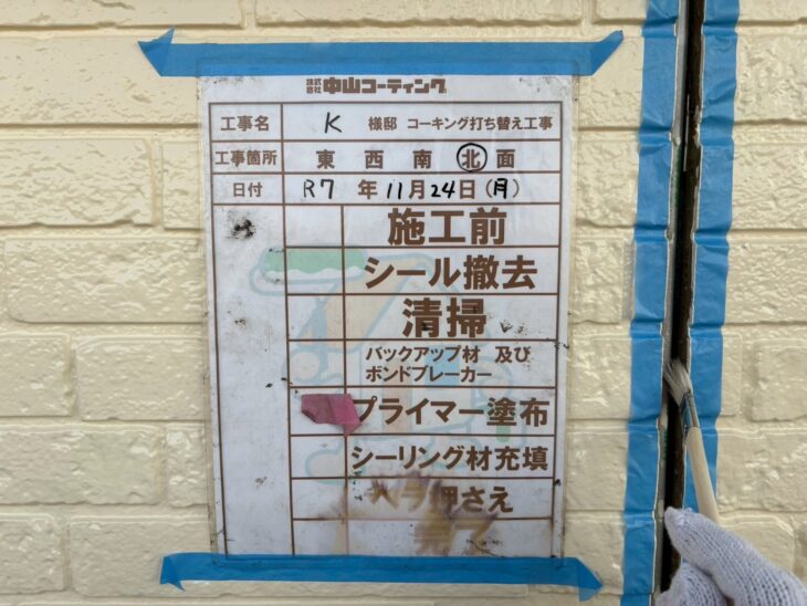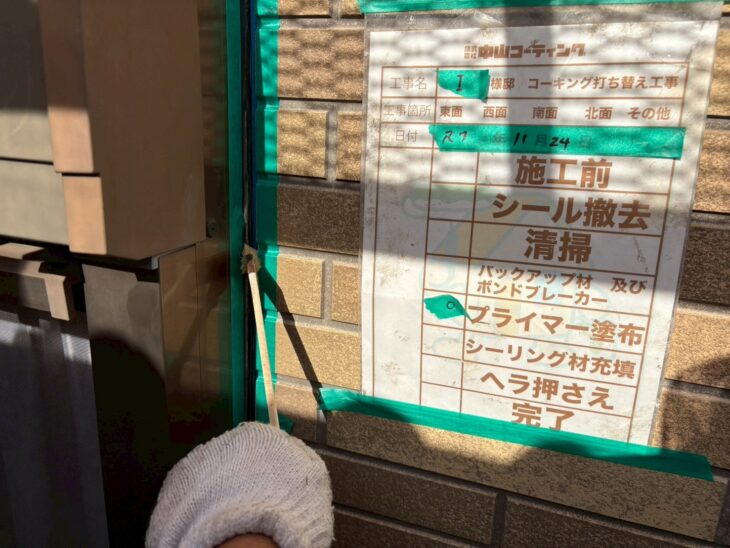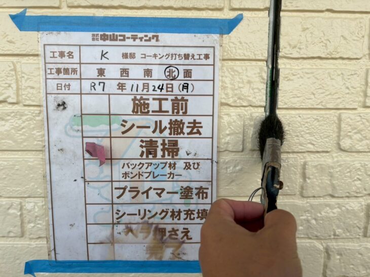 施工前に古いコーキング材を丁寧に撤去し、下地処理をしっかりと行いました。