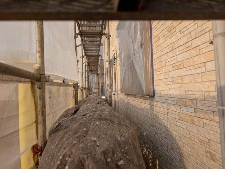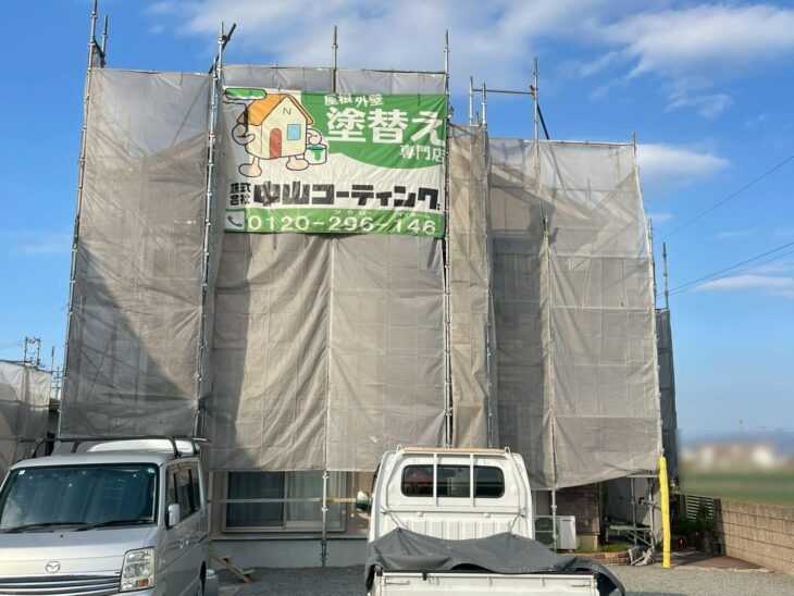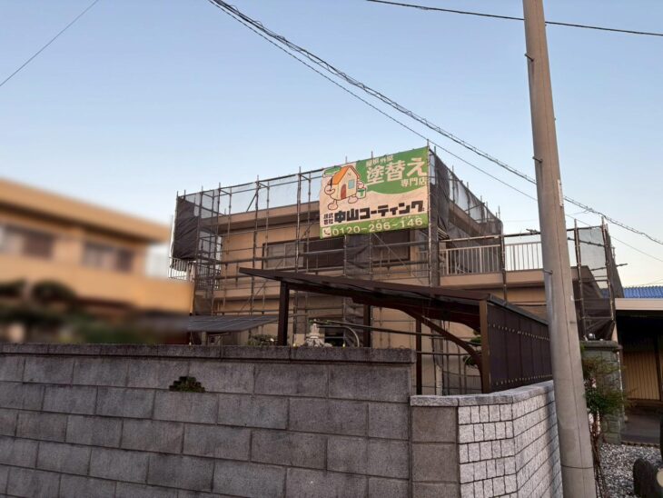S様邸では塗装前のビニール養生作業を行いました。
