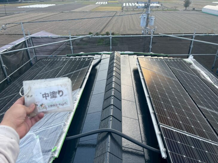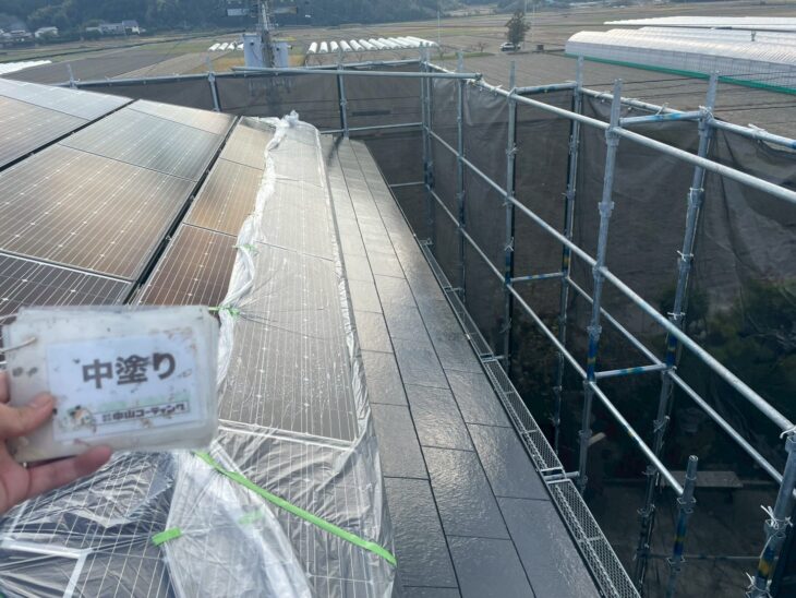 屋根中塗り塗装作業 完了しました。