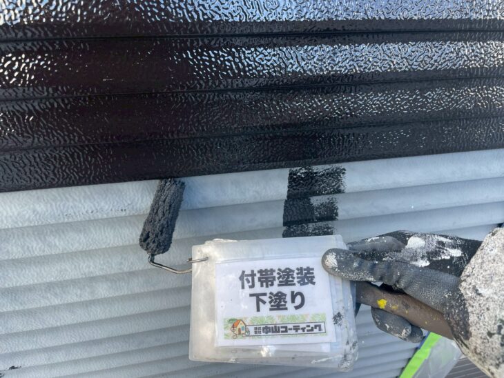 雨戸戸袋下塗り塗装を行います。