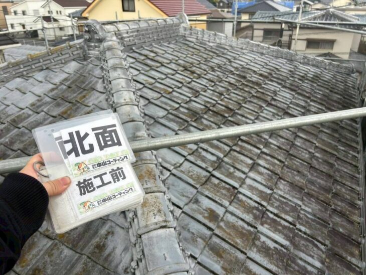 屋根にコケや汚れが目立っていたため、高圧洗浄作業を行いました。