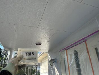 軒天井下塗り塗装を行います。