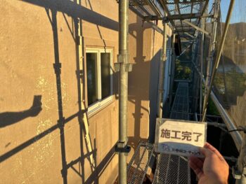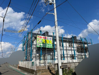 横川ハイツ様では外壁塗装作業を行いました。