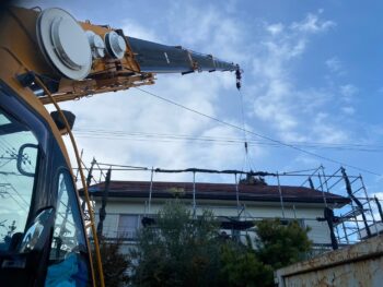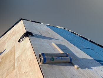 既存屋根材撤去後、ルーフィングを取り付けします。
