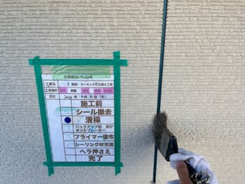 T様邸では塗装作業前の養生作業を行いました。