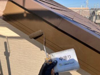 屋根中塗り塗装を行います。