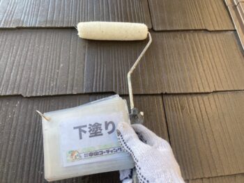 屋根下塗り塗装を行います。