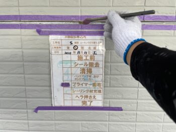 既存の古いコーキングを撤去します。