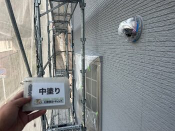 外壁中塗り塗装を行います。