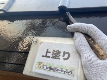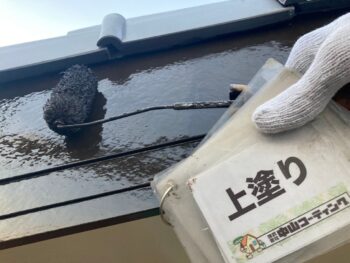 破風 上塗り塗装を行います。