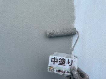 外壁 中塗り塗装を行います。