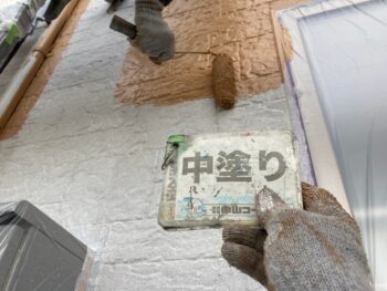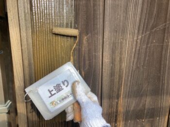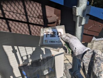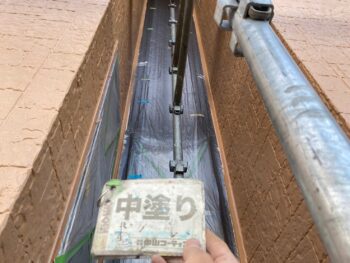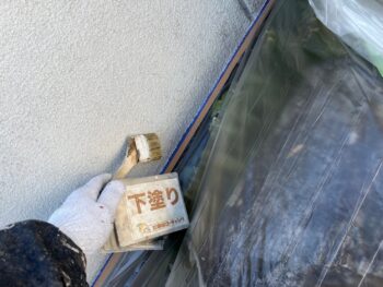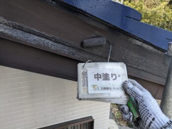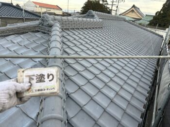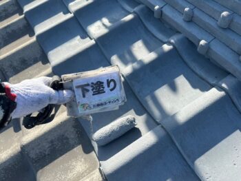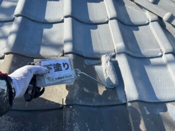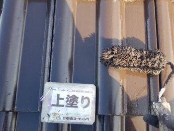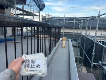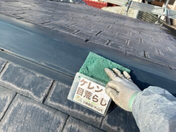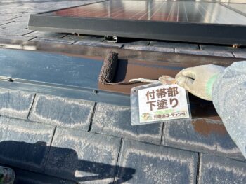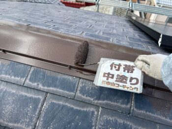 ガルバリウム鋼板施工前に屋根棟の塗装を行います。