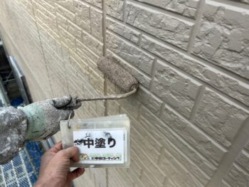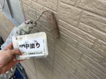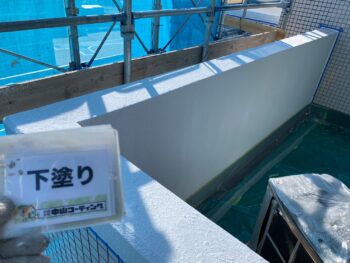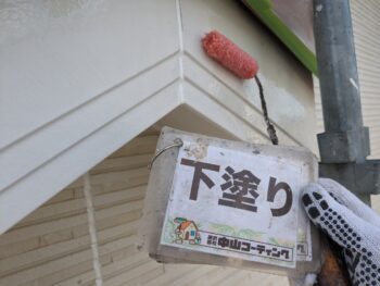 下地補修後、外壁下塗り塗装を行います。