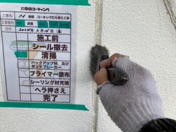 既存の古いコーキング材を撤去します。