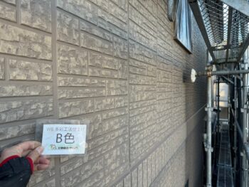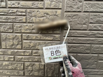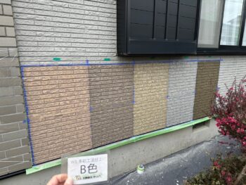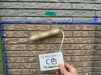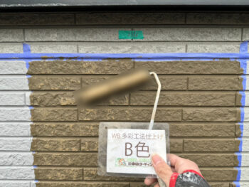 O様邸ではWB多彩工法に試し塗り塗装を行いました。