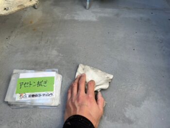 アセトン拭きで汚れを拭き取ります。